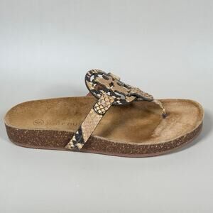Tory Burch Miller Sandals | Snakeskin Print Thong Sandals | Iconic Logo Sandals