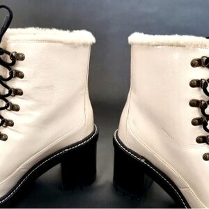 Tory Burch Miller Shearling Lug Sole Bootie Boots SPAIN Brie Leather Fur Lining