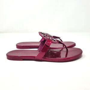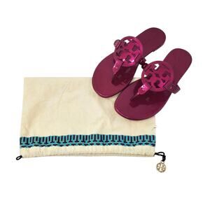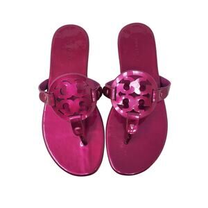 Tory Burch Miller Soft Medallion Thong Flat Sandals In Hot Pink Leather Size 6