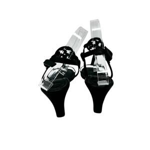 Tory Burch Miller Wedge Heels Sandals Black Leather Logo Sandals Size 8.5
