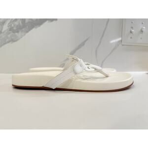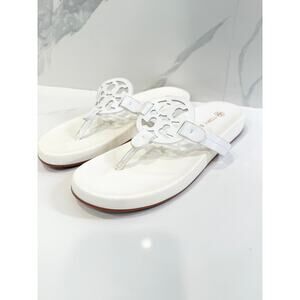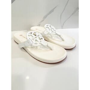 Tory Burch Miller White Leather Logo Cutout Thong Sandals Flip Flops Sz 40 / 9.5