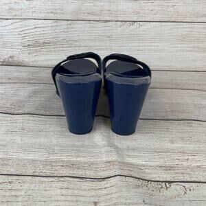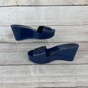 Tory Burch Miller Womens Sz 9.5M Platform Slides Wedges Navy Blue