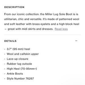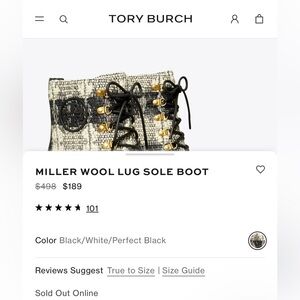 Tory Burch Miller Wool Lug Sole Boot Combat Boot Chunky Block Heel Size 8 Womens