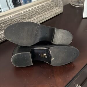 Tory Burch Miller black leather boots gold tone logo zipper booties Sz 10 1/2