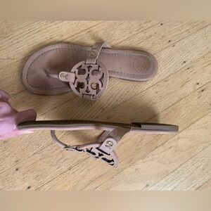 These Tory Burch miller sandals are darling on. There are some minor signs of wear but I don’t notice them when they’re on my foot. The neutral color matches everything. Full condition as photographed.