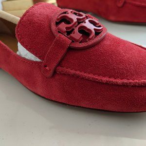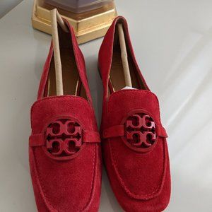 Tory Burch Miller-logo Loafers Bright Carnelian Suede Sz 6.5
