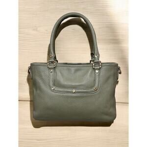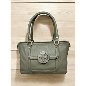 This Tory Burch Mini Amanda Convertible Satchel Bag is a sophisticated take on a smaller bag. Featuring pebble leather in a light sage green with gold hardware, this satchel is both stylish and functional with a removable/adjustable strap for hand, shoulder or crossbody wear. A great neutral color for the season and if you love the quality and style of Tory Burch, then this is a must have for your collection!