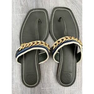 Tory Burch Mini Benton Gold Chain Band Flat Sandals Poblano Yonder Womens 6.5M