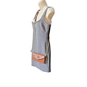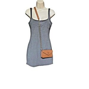 Tory Burch Mini Brown Tan Crossbody Leather Bag Purse Clutch Gold Chain Logo