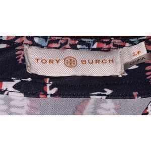 Tory Burch Mini Dress Women's Small Viscose Fantasy Navy V Neck Long Sleeve Zip.