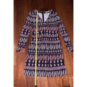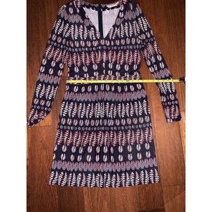Tory Burch Mini Dress Women's Small Viscose Fantasy Navy V Neck Long Sleeve Zip