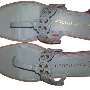 Tory Burch Mini Miller Pastel Blue Logo Leather Sandals