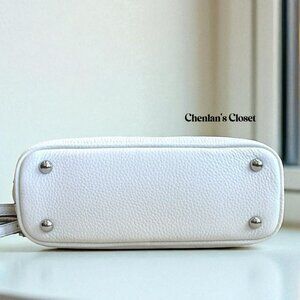 Elegant and cute! White leather with silver detailing. Silver detailing. Goes well with everything. Authentic. Brand new with tags.
