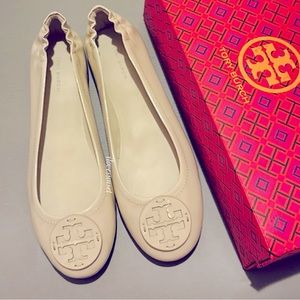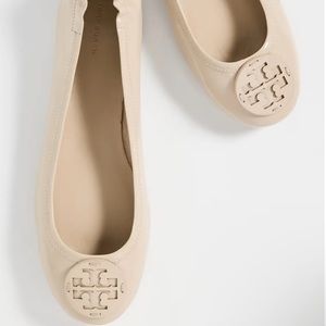 {Tory Burch} Minnie Ballet Flat Patent Leather - Stone Gray