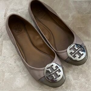 Tory Burch Minnie Cap Toe Light Taupe/Grey Ballet Flats Women's Size 5