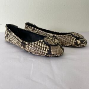 Tory Burch Minnie Flats Size 8 Roccia Snake Emboss Leather Logo Travel Ballet