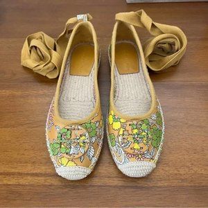 Tory Burch Minnie Rust Wallpaper Floral Leather Ballet Ankle Tie Espadrille Flat