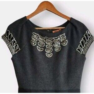 Tory Burch Minnie Sheath Dress Womens Small Black Embellished Wool Lined