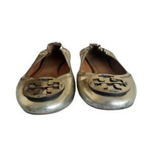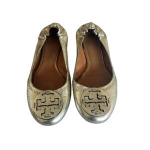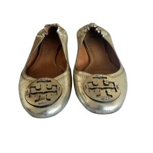 Tory Burch Minnie Spark Gold Metallic Leather Travel Ballet Flats Shoe Size 5M