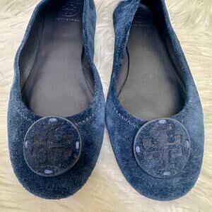 Tory Burch Minnie Travel Ballet Flat Blue Suede Womens Sz 6.5 M Foldable