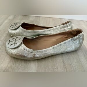 Tory Burch Minnie Travel Ballet Flat Royal Metallic Sliver Womans sz 9.5