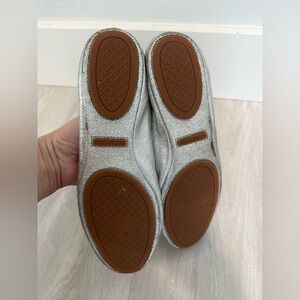 Step out in style with these Tory Burch ballet flats. Featuring a sleek silver design, these shoes offer both elegance and comfort. Perfect for any occasion.