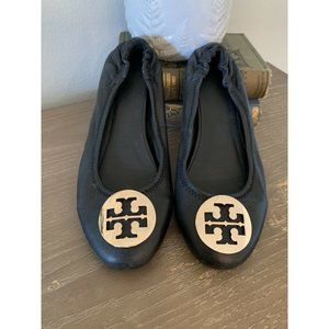 Tory Burch Minnie Travel Ballet Flats size 7 Logo designer leather slip on shoe