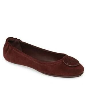 Tory Burch Minnie Travel Flats Size 5.5 Black Cherry Burgundy Leather Ballet