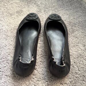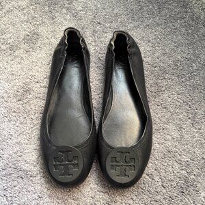 Tory Burch Minnie Travel Leather Black Ballet Flats