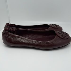 Tory Burch Minnie Travel Leather Plum Burgundy Ballet Flats Slip on Size 7 - NEW