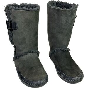 Tory Burch Moccasin Style Suede Shearling Boots with Buckles