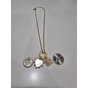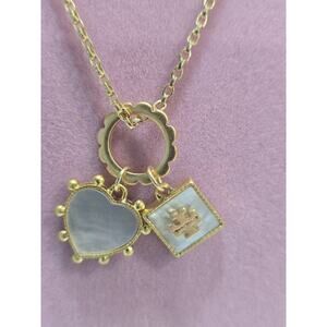 Tory Burch Mother of Pearl Heart & Square Logo Pendants Necklace *NWOT MSRP=$148