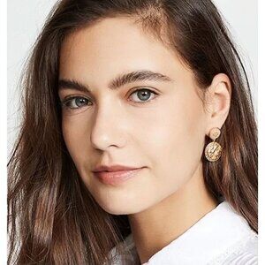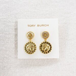Tory Burch Mother of Pearl Logo Coin Medallion Drop Earrings New Ivory/Tory Gold