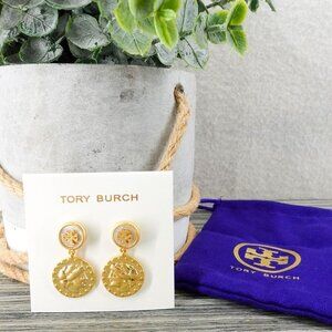Tory Burch Mother of Pearl Logo Coin Medallion Drop Earrings New Ivory/Tory Gold OS