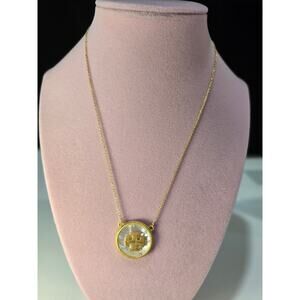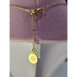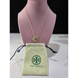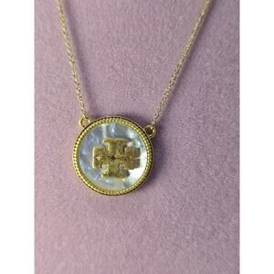Tory Burch Mother-of-Pearl Kira Logo Pendant Necklace 16" Chain w/2" Extender with a Tory Burch jewelry pouch