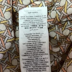 Tory Burch Multi Geometric Basket Weave Print Voile Tassel V-Neck Tunic Top XS