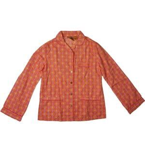 Tory Burch Multi Geometric Print Long Sleeve Collared 2 Piece Sleep Pajamas XS