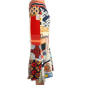 Tory Burch Multicolor Geometric Print Stretch High Waisted Flare Midi Skirt Sz S
