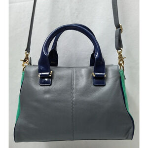 Tory Burch Multicolor Leather Suede Double Handles Zipper Satchel Shoulder Bag