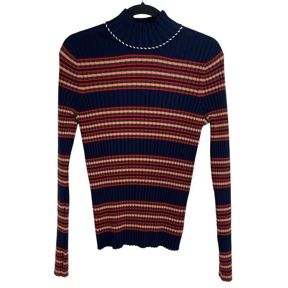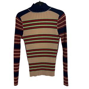 Tory Burch Multicolor Pullover Striped Turtleneck Sweater Size L