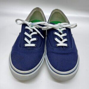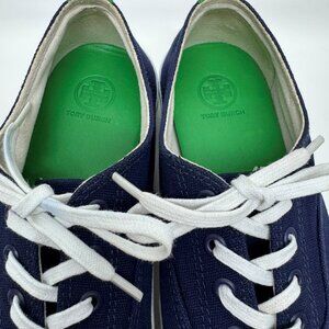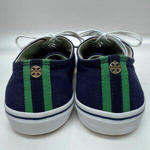 Tory Burch Murray Canvas Sneakers Lace Up Navy Green White Womens Size 8