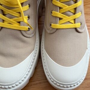Brand new in box! Tory Burch Camp Sneaker Boot in Sand Tan/Sand Tan. Canvas/Nat Suede. Size 8.