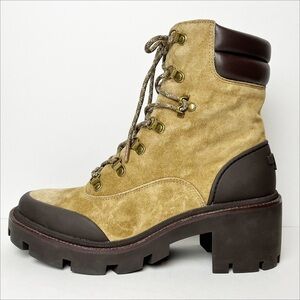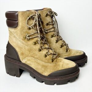 NIB Tory Burch Lug Sole Hiker Ankle Boots in Natural Suede size 10