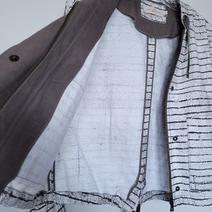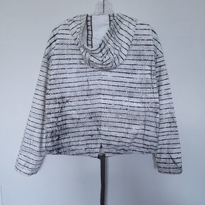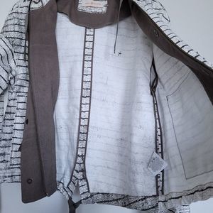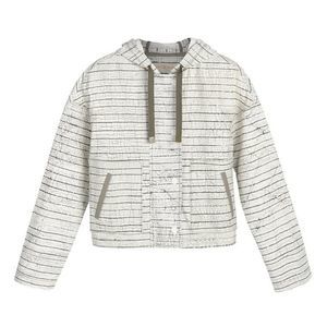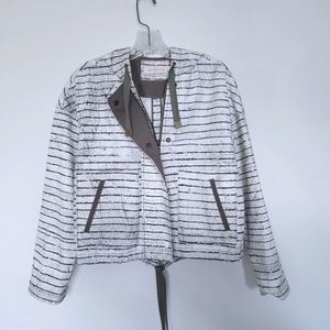 Cotton canvas construction and an earthy crackle print bring artisanal appeal to a relaxed, sporty jacket refined by perfectly imperfect stripes. The global-chic style beautifully marries Tory Burch's eclectic aesthetic with Piece & Co.'s unique, handcrafted fabrics.
