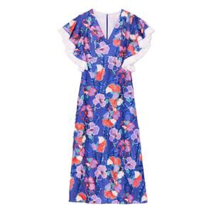 Tory Burch Natalie Floral Midi Resort Dress Ruffle Trim Blue