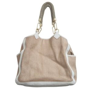 Tory Burch Natural & White Channing Straw & Leather Tote