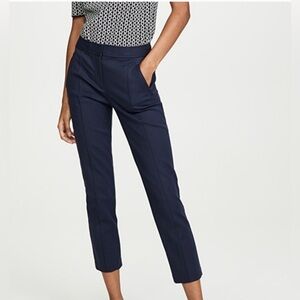 Elegant navy ankle pants. Sleek design with tailored fit. Perfect for versatile styling.