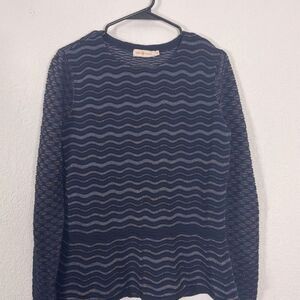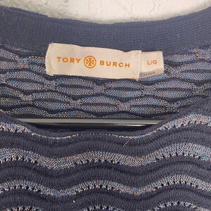Great condition Tory Burch Navy Blue & Brown Sparkle Merino Wool Crewneck Pullover Sweater