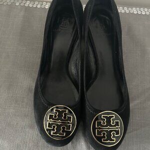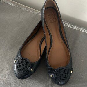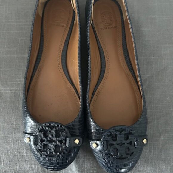 Tory Burch Navy Blue Lizard Embossed Leather Ballet Flats