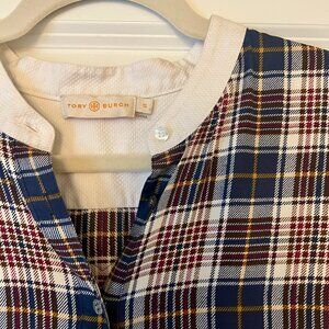 Tory Burch Plaid Drop Waist Button Up Dress